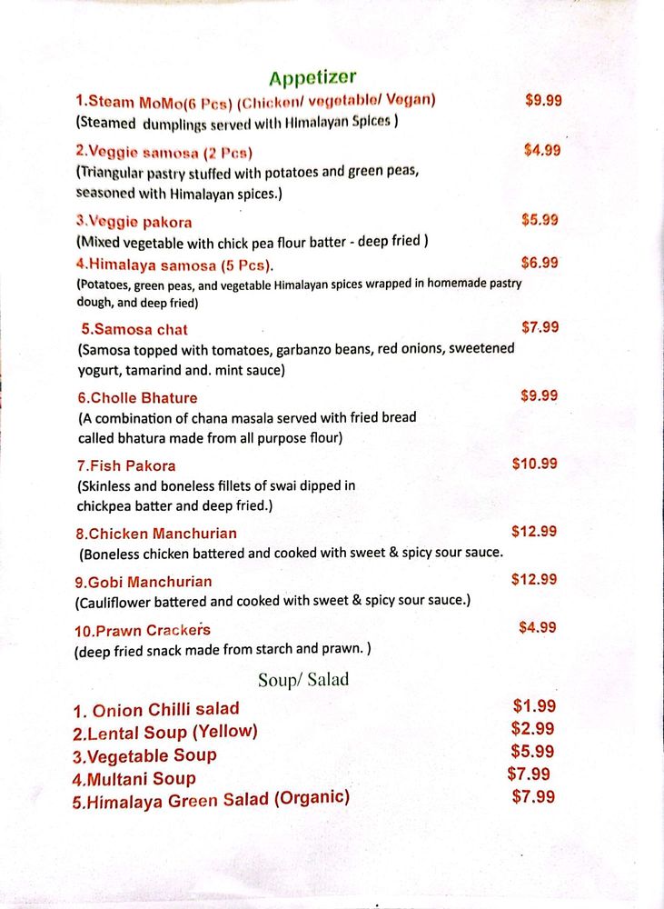 Himalaya MoMo Indian and Nepalese Cuisine Menu (Update 2025)
